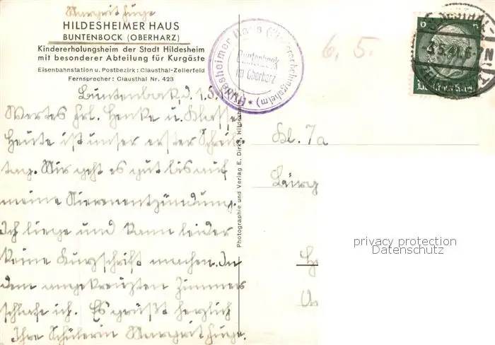 73812939 Buntenbock Hildesheimer Haus Kindererholungsheim Buntenbock postalisch gelaufen 1941 Erhaltung siehe scans [FriedD77] [Frierer ]