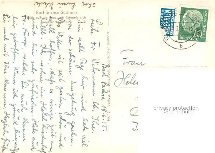 73812948 Bad_Sachsa_Harz Panorama Blick auf die Stadt mit Schmelzteich und Sachsenstein Bad_Sachsa_Harz postalisch gelaufen 1955 Erhaltung siehe scans [FriedD77] [Frierer ]
