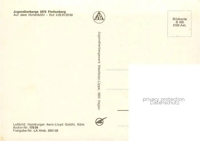73813089 Plettenberg Jugendherberge Plettenberg postalisch nicht gelaufen nach 1965 Fliegeraufnahme Erhaltung siehe scans [FriedD77] Fliegeraufnahme[Frierer ]