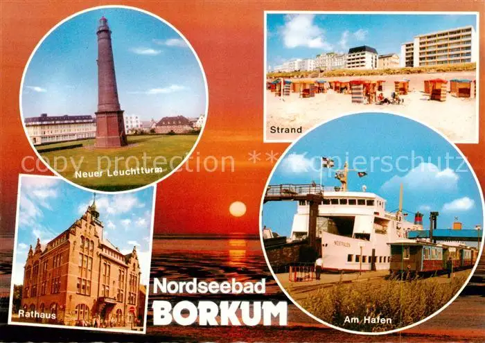 AK / Ansichtskarte 73813112 Borkum Leuchtturm Rathaus Strand Hafen Borkum