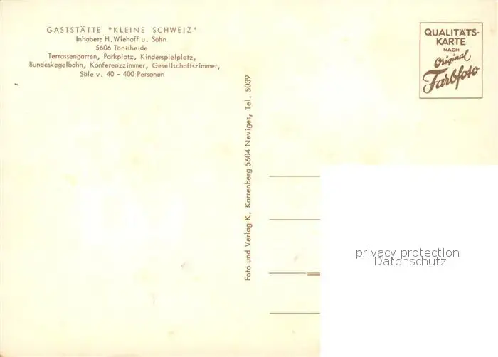 73813148 Toenisheide Gaststaette Kleine Schweiz Toenisheide postalisch nicht gelaufen nach 1965 Erhaltung siehe scans [WerneD78] [WernPID7 ]