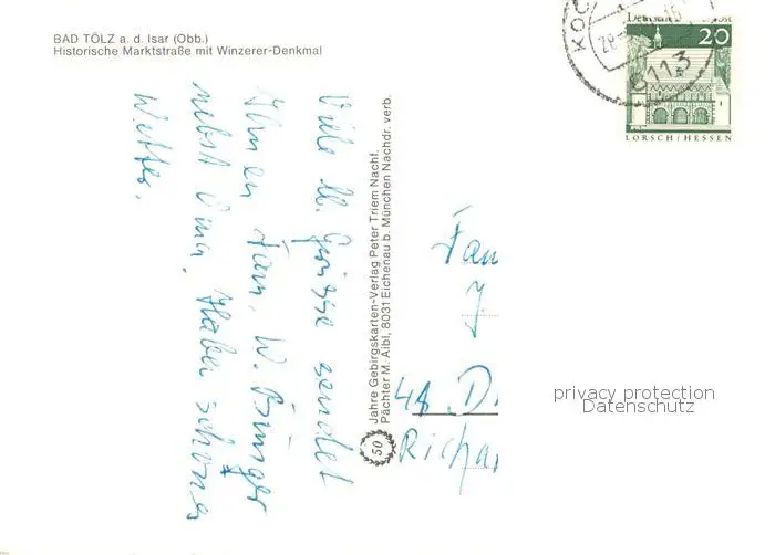 73813168 Bad_Toelz Historische Marktstrasse mit Winzerer Denkmal Bad_Toelz postalisch gelaufen nach 1965 Erhaltung siehe scans [WerneD78] [WernPID7 ]