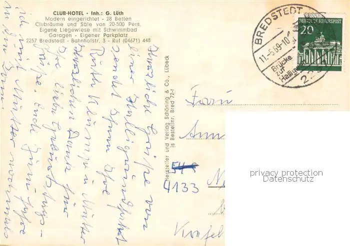 73813367 Bredstedt Club Hotel Gastraeume Pool Bredstedt postalisch gelaufen 1969 Erhaltung siehe scans [WerneD78] [WernPID7 ]