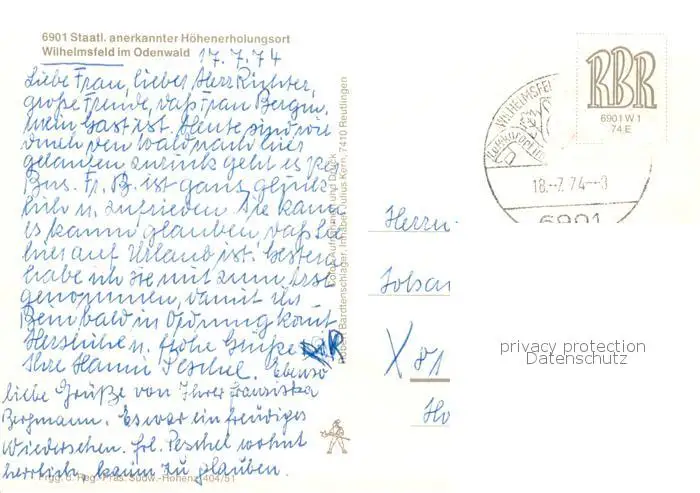 73813405 Wilhelmsfeld Fliegeraufnahme Panorama Teilansichten Wilhelmsfeld postalisch gelaufen 1974 Erhaltung siehe scans [WerneD78] [WernPID7 ]