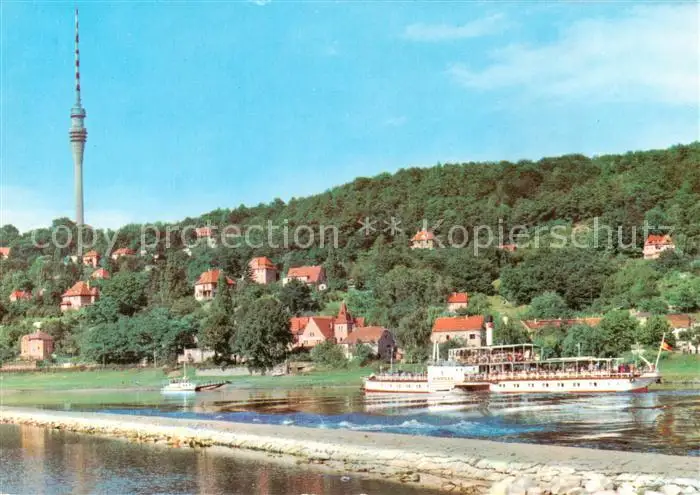 73813470 Wachwitz_Dresden Elbepartie mit Weisser Flotte und Fernsehturm postalisch gelaufen nach 1965 Erhaltung siehe scans [WerneD78] [WernPID7 ]