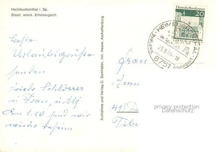 73813592 Heimbuchenthal Panorama Erholungsort im Naturpark Spessart Heimbuchenthal postalisch gelaufen 1969 Erhaltung siehe scans [FriedD77] [Frierer ]