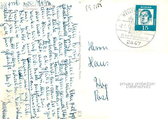 73813719 Heiligenhafen_Ostseebad Strandpartie Heiligenhafen_Ostseebad postalisch gelaufen 1965 Erhaltung siehe scans [WerneD78] [WernPID7 ]