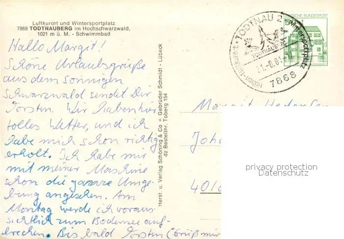 73813798 Todtnauberg Panorama mit Schwimmbad Todtnauberg postalisch gelaufen 1981 Erhaltung siehe scans [WerneD78] [WernPID7 ]