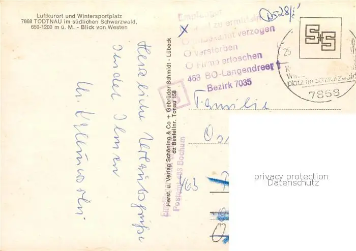 73813799 Todtnau Panorama Todtnau postalisch gelaufen nach 1965 Erhaltung siehe scans [WerneD78] [WernPID7 ]