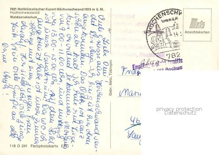 73813848 Hoechenschwand Waldsanatorium Hoechenschwand postalisch gelaufen nach 1965 Erhaltung siehe scans [WerneD78] [WernPID7 ]
