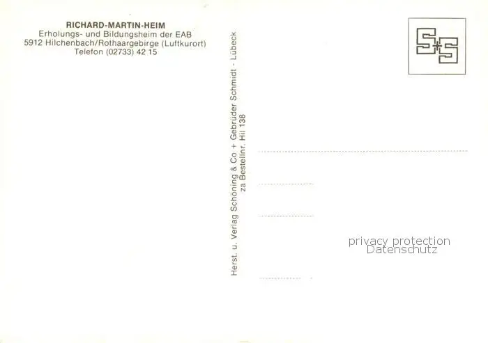 73813864 Hilchenbach Richard Martin Heim postalisch nicht gelaufen nach 1965 Erhaltung siehe scans [WerneD78] [WernPID7 ]