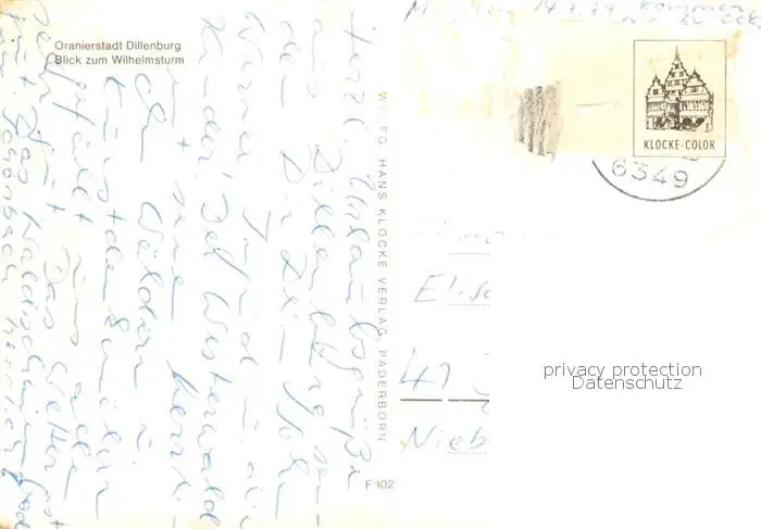 73813887 Dillenburg Stadtansicht mit Kirche und Wilhelmsturm Dillenburg postalisch gelaufen nach 1965 Erhaltung siehe scans [WerneD78] [WernPID7 ]