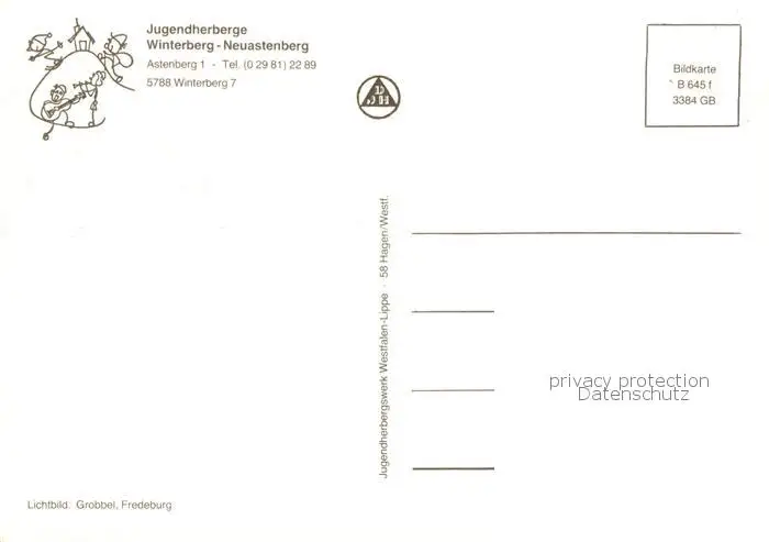 73813962 Neuastenberg Jugendherberge Winterberg Neuastenberg postalisch nicht gelaufen nach 1965 Erhaltung siehe scans [WerneD78] [WernPID7 ]