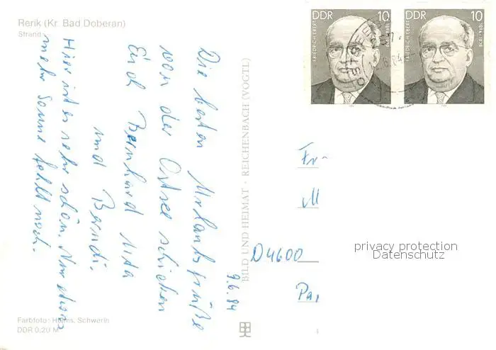 73813998 Rerik_Ostseebad Strand Rerik_Ostseebad postalisch gelaufen 1984 Erhaltung siehe scans [FriedD77] [Frierer ]