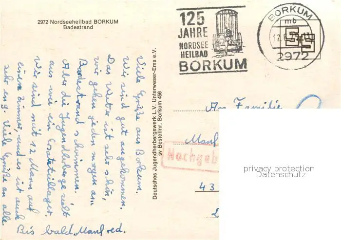 73813999 Borkum_Nordseeheilbad Strandpartie postalisch gelaufen 1975 Erhaltung siehe scans [FriedD77] [Frierer ]