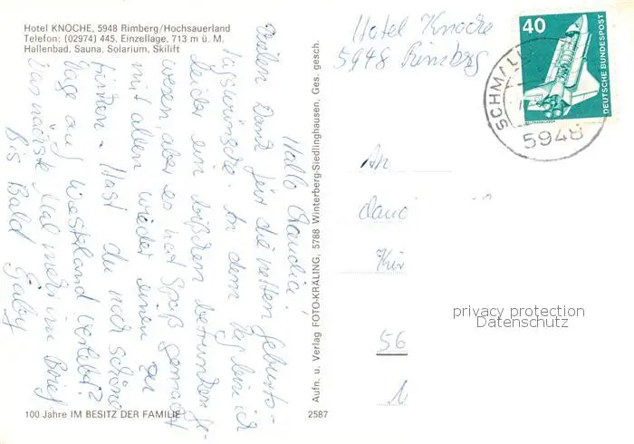73814016 Rimberg_Schmallenberg Hotel Knoche Hallenbad Foyer Panorama Rimberg_Schmallenberg postalisch gelaufen 1977 Erhaltung siehe scans [FriedD77] [Frierer ]