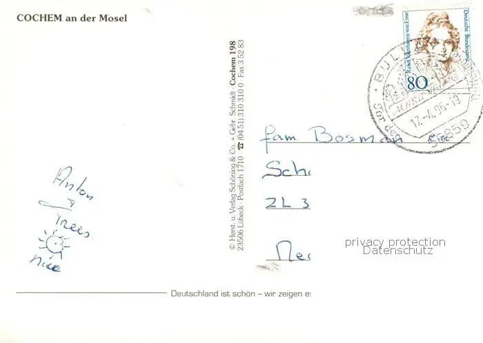 73814272 Cochem_Kochem_Mosel Moselpartien Orts und Teilansichten postalisch gelaufen 1996 Erhaltung siehe scans [FriedD77] [Frierer ]