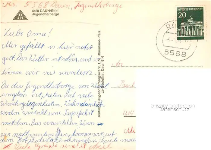 73814284 Daun_Eifel Jugendherberge Empfangshalle Pfarrkirche Schloss Daun Daun_Eifel postalisch gelaufen 1968 Erhaltung siehe scans [FriedD77] [Frierer ]