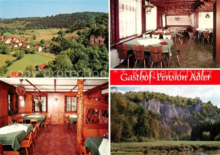 73814307 Anhausen_Hayingen Gasthof Pension Adler Gaststube Panorama Anhausen Hayingen postalisch nicht gelaufen nach 1965 Erhaltung siehe scans [FriedD77] [Frierer ]