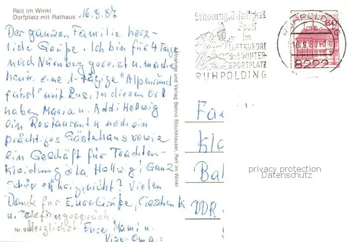 73814349 Reit_Winkl Dorfplatz mit Rathaus Reit_Winkl postalisch gelaufen 1987 Erhaltung siehe scans [FriedD77] [Frierer ]