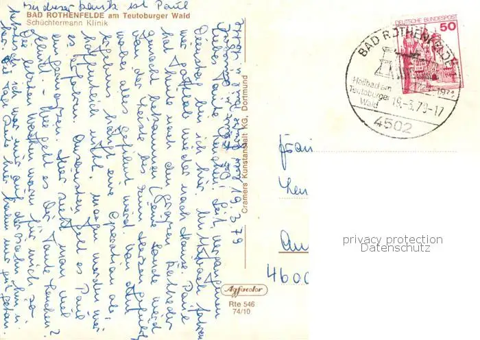 73814946 Bad_Rothenfelde Schuechtermann Klinik Bad_Rothenfelde postalisch gelaufen 1979 Erhaltung siehe scans [WerneD78] [WernPID7 ]
