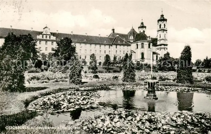 AK / Ansichtskarte 73815463 Ottobeuren Benediktinerabtei Park Teich Ottobeuren