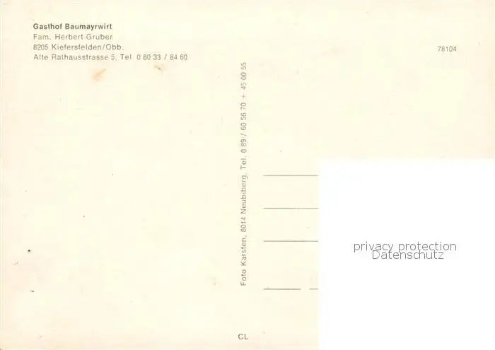 73815607 Kiefersfelden Gasthof Baumayrwirt Kiefersfelden postalisch nicht gelaufen nach 1965 Erhaltung siehe scans [FriedD77] [Frierer ]