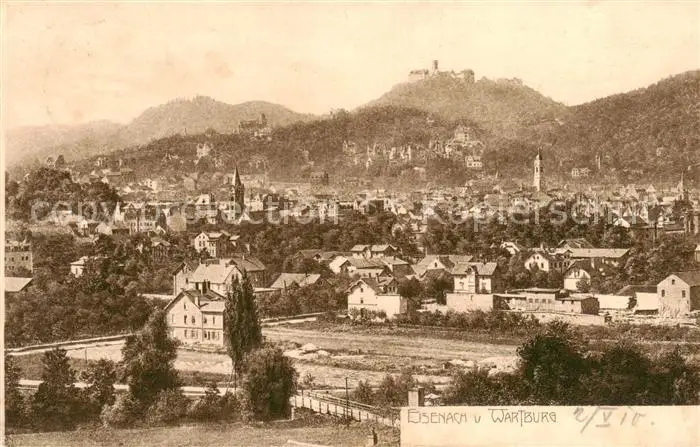 73816596 Eisenach Panorama mit Wartburg postalisch gelaufen 1910 Erhaltung siehe scans [FriedD77] [Frierer ]