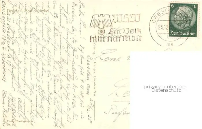 73816667 Dresden_Elbe Frauenkirche postalisch gelaufen 1938 Erhaltung siehe scans [FriedD77] [Frierer ]