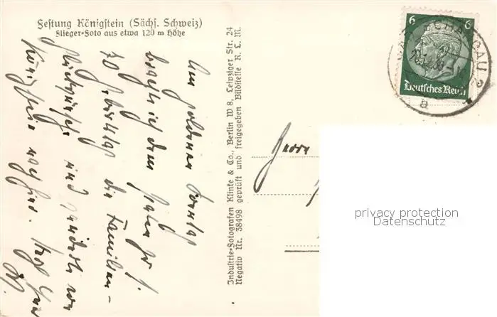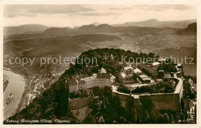 73817168 Koenigstein_Saechsische_Schweiz Festung Fliegeraufnahme Koenigstein_Saechsische postalisch gelaufen 1938 Erhaltung siehe scans [WerneD78] [WernPID7 ]