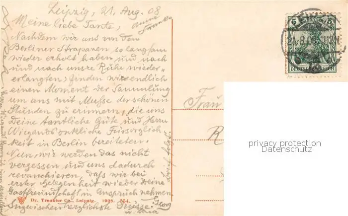 73817180 Leipzig Augustusplatz Hauptpost und Blick in den Grimmaischen Steinweg Leipzig postalisch gelaufen 1908 Erhaltung siehe scans [WerneD78] [WernPID7 ]