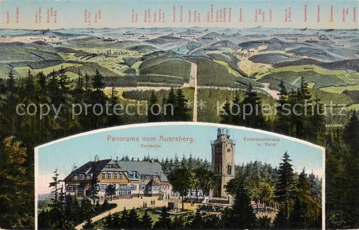 73817256 Wildenthal_Eibenstock Panorama vom Auersberg Unterkunftshaus Turm Wildenthal_Eibenstock postalisch gelaufen 1922 Erhaltung siehe scans [FriedD77] [Frierer ]