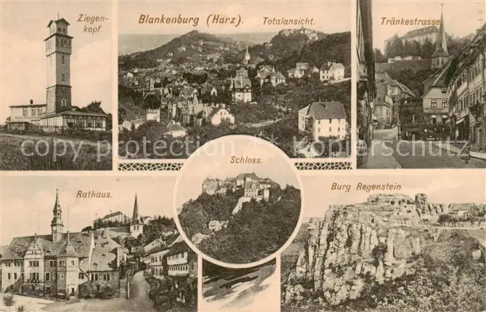 AK / Ansichtskarte  Blankenburg_Harz Ziegenkopf Traenkestrasse Rathaus Schloss Burg Regenstein Blankenburg_Harz