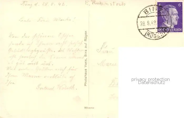 73817824 Binz_Ruegen Strand Hotels Binz_Ruegen postalisch gelaufen 1942 Erhaltung siehe scans [FriedD77] [Frierer ]