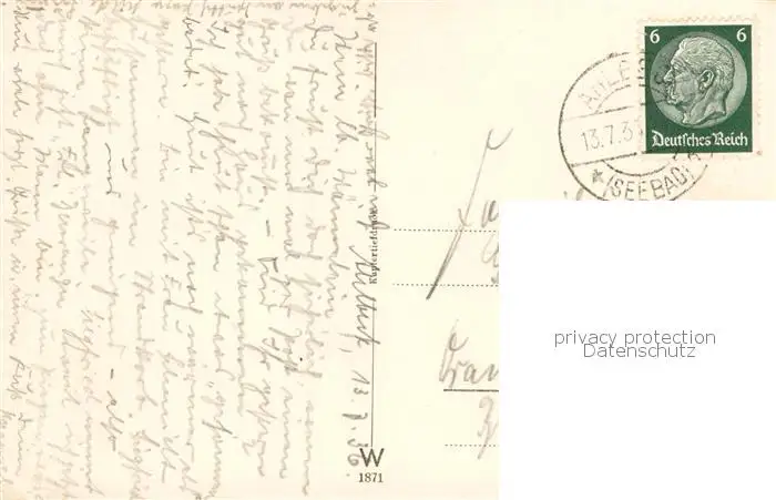 73818096 Ahlbeck_Ostseebad Blick von der Seebruecke Strand Ahlbeck_Ostseebad postalisch gelaufen 1936 Erhaltung siehe scans [FriedD77] [Frierer ]