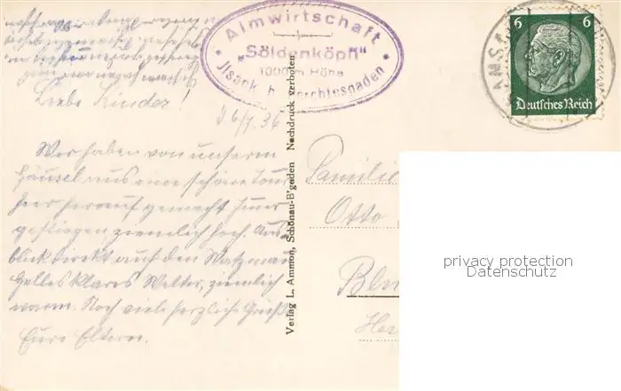73818136 Brunnhaus_998m_Watzmann_Berchtesgaden Almwirtschaft Soeldenkoepfl mit Watzmann postalisch gelaufen 1936 Erhaltung siehe scans [WerneD78] [WernPID7 ]