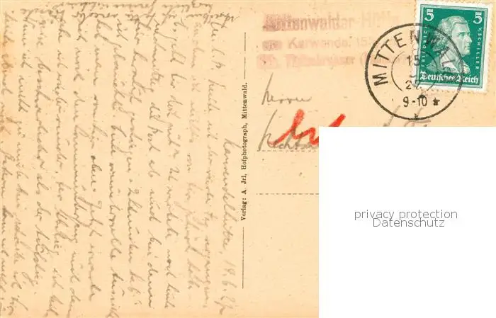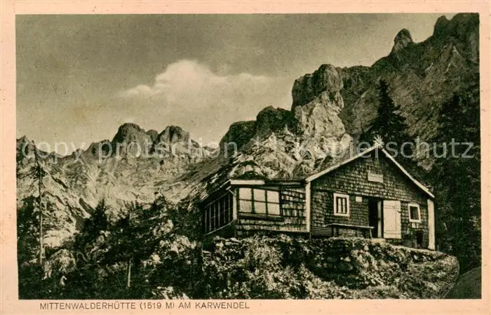 73818137 Mittenwald_Bayern Mittenwalder Huette am Karwendel Mittenwald Bayern postalisch gelaufen 1927 Erhaltung siehe scans [WerneD78] [WernPID7 ]