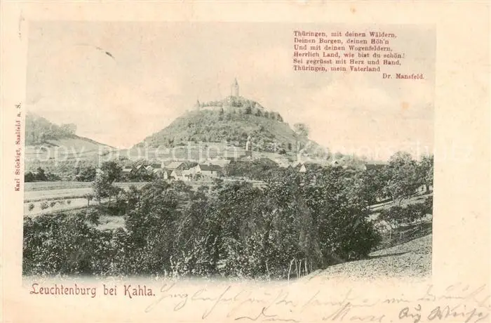 73818569 Kahla__Thueringen Panorama Blick gegen Leuchtenburg postalisch gelaufen 1902 Erhaltung siehe scans [FriedD77] [Frierer ]