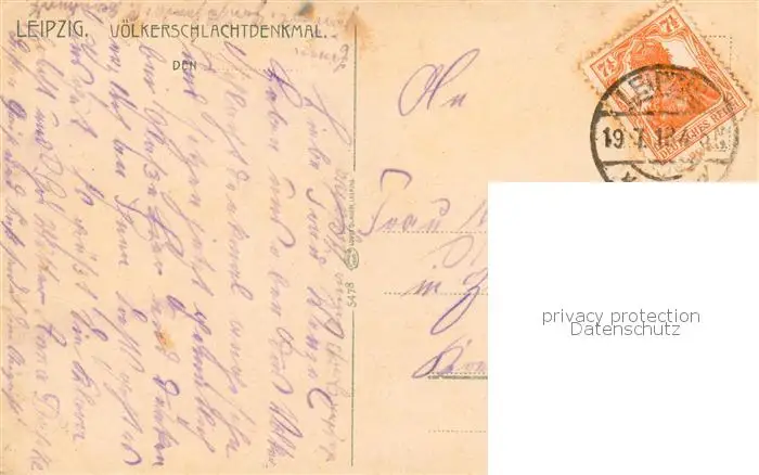 73819116 Leipzig Voelkerschlachtdenkmal Leipzig postalisch gelaufen 1913 Erhaltung siehe scans [WerneD78] [WernPID7 ]