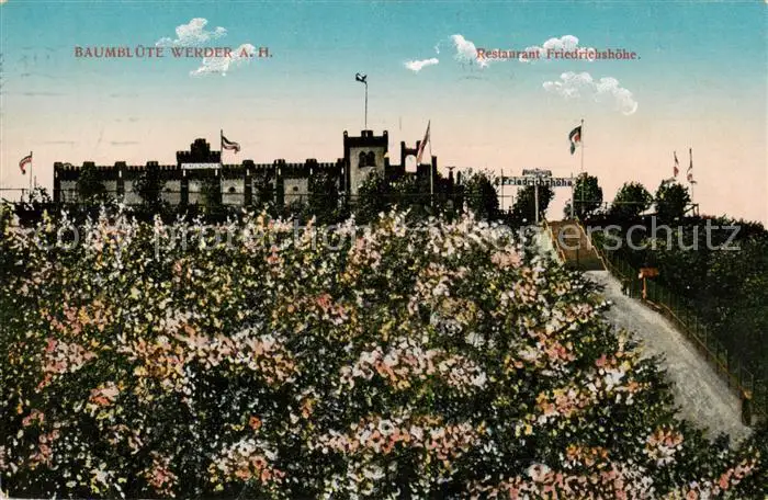 73819127 Werder_Havel Baumbluete Restaurant Friedrichshoehe Werder Havel postalisch gelaufen 1914 Erhaltung siehe scans [WerneD78] [WernPID7 ]
