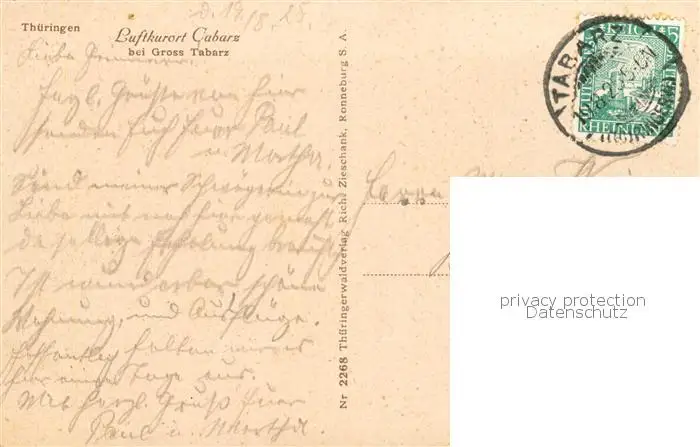 73819229 Cabarz_Tabarz Ortsansicht postalisch gelaufen 1925 Erhaltung siehe scans [WerneD78] [WernPID7 ]