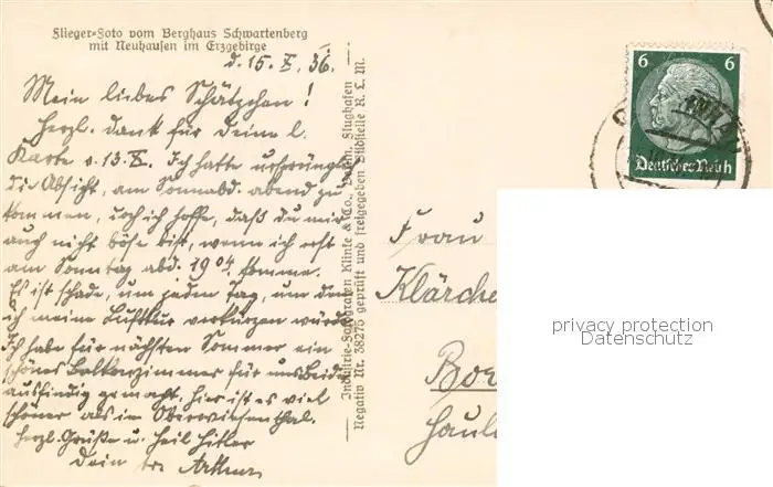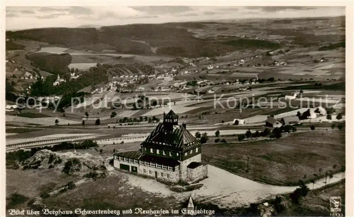 73819322 Neuhausen_Erzgebirge Fliegeraufnahme mit Berghaus Schwartenberg Neuhausen Erzgebirge postalisch gelaufen 1936 Erhaltung siehe scans [FriedD77] [Frierer ]
