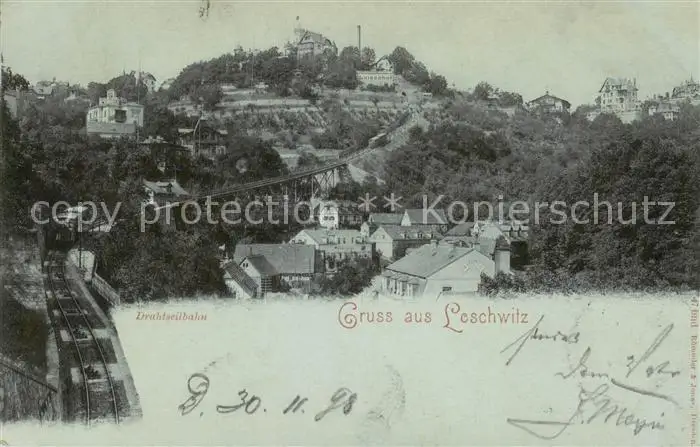 73819498 Loschwitz_Dresden_Elbe Panorama mit Drahtseilbahn postalisch gelaufen 1898 Erhaltung siehe scans [WerneD78] [WernPID7 ]