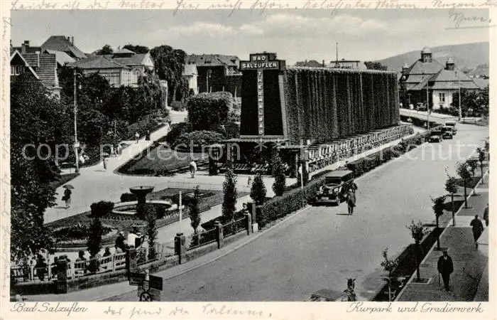 73819552 Bad_Salzuflen Kurpark mit Gradierwerk Bad_Salzuflen postalisch gelaufen 1937 Erhaltung siehe scans [WerneD78] [WernPID7 ]