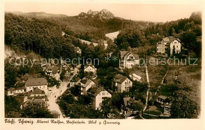 73819637 Rathen_Saechsische Schweiz Panorama Basteiseite Blick zum Gamrig-Massiv Elbsandsteingebirge Rathen Saechsische Schweiz postalisch gelaufen 1941 Erhaltung siehe scans [FriedD77] [Frierer ]