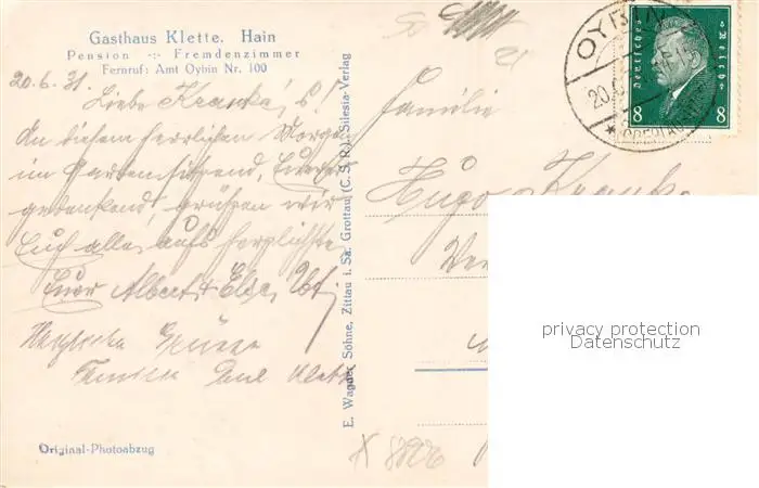 73819638 Hain_Oybin Panorama Luftkurort Gasthaus Klette Zittauer Gebirge Hain_Oybin postalisch gelaufen 1931 Erhaltung siehe scans [FriedD77] [Frierer ]