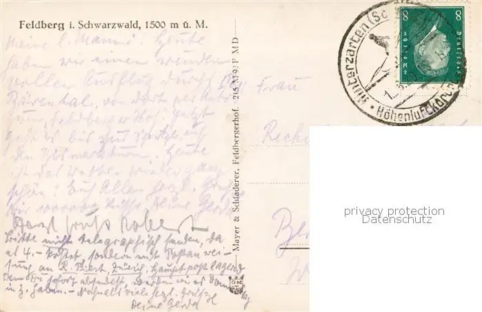 73820205 Feldberg_1450m_Schwarzwald Feldbergturm postalisch gelaufen 1929 Erhaltung siehe scans [WerneD78] [WernPID7 ]