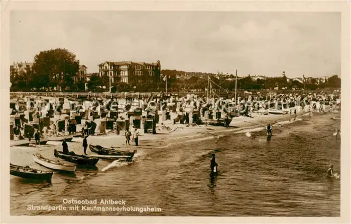 AK / Ansichtskarte 73820261 Ahlbeck_Ostseebad Strandpartie mit Kaufmannserholungsheim Ahlbeck_Ostseebad