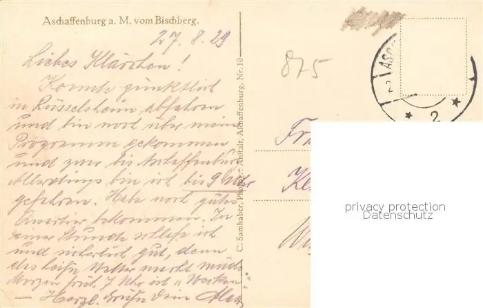 73820307 Aschaffenburg_Main Panorama Aschaffenburg Main postalisch gelaufen 1929 Erhaltung siehe scans [FriedD77] [Frierer ]