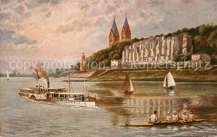 AK / Ansichtskarte 73820538 Kaiserswerth_Rhein Rheindampfer Schlossruine Kirche